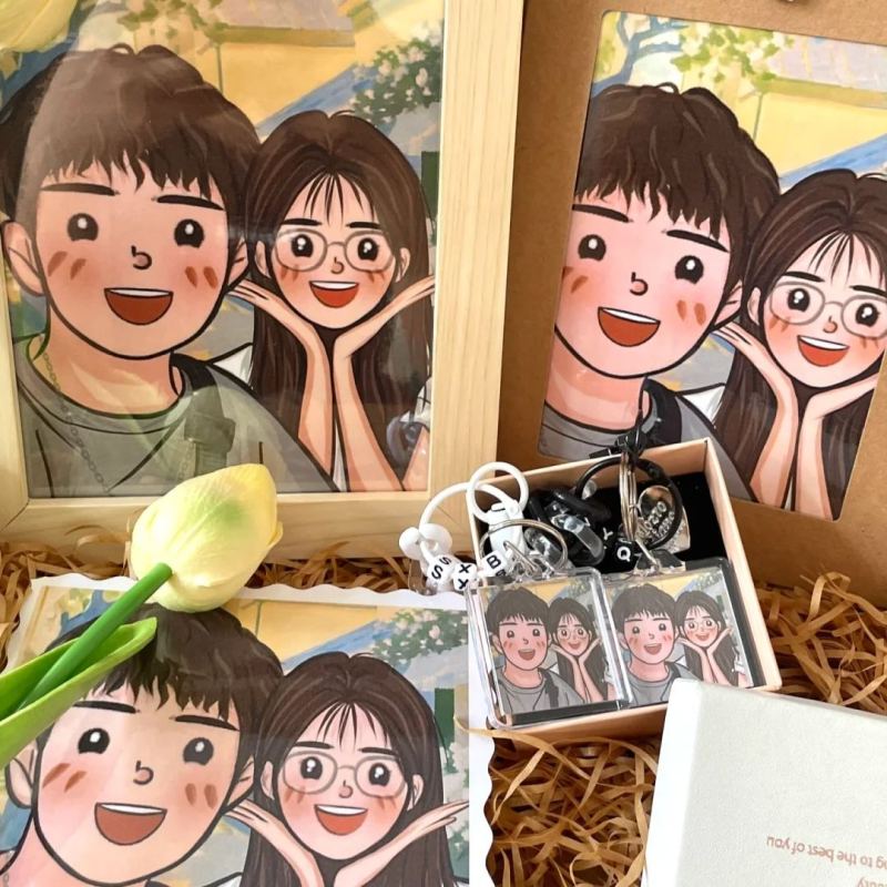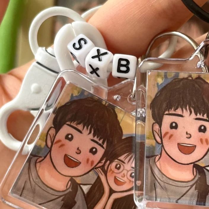 Home / Custom-made Set of Two Cartoon Photo Acrylic Keychains Personalized Souvenir Gift For Couple
