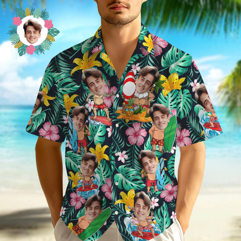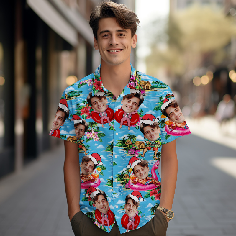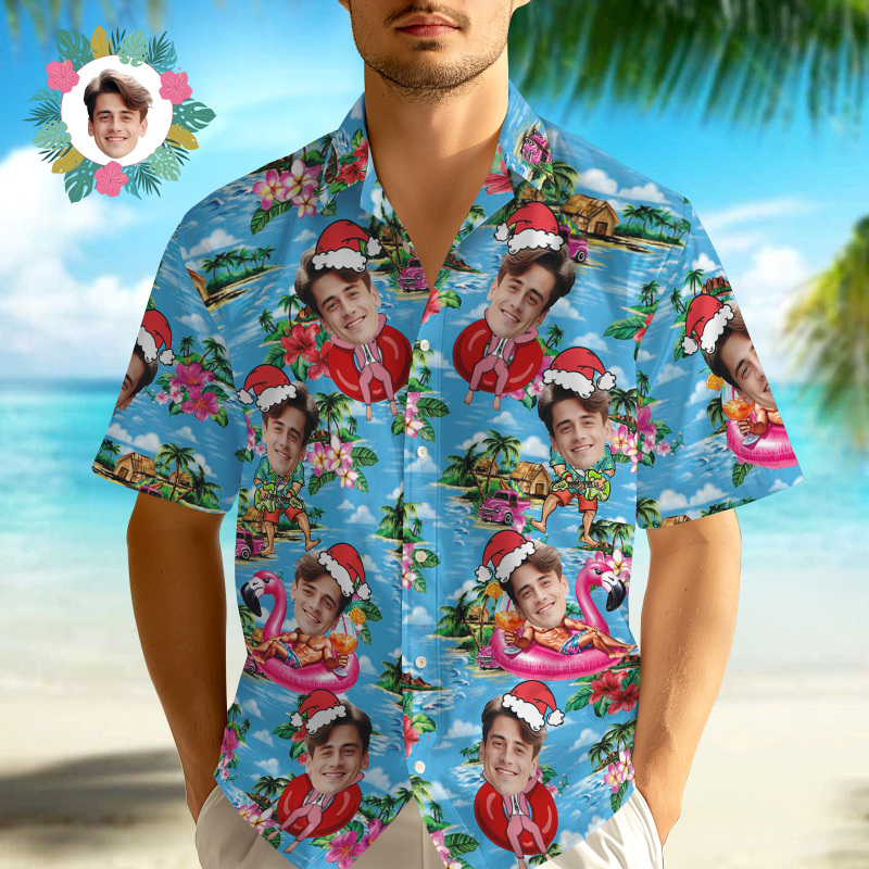 Custom Christmas Face Button-down Shirts Custom Face Beach Hawaiian Shirts Gifts For Him