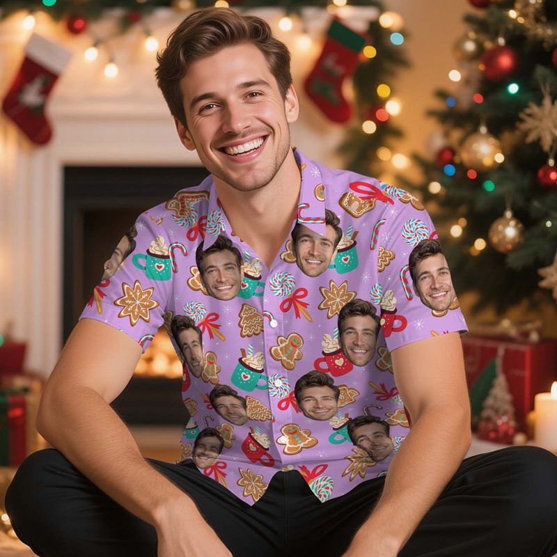 Home / Custom Christmas Hawaiian Shirt With Face Personalized Photo Shirt Christmas Gift For Him