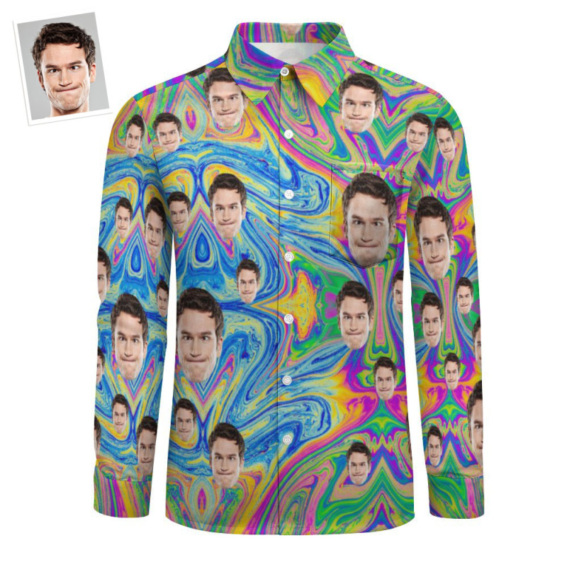 Custom Face All Over Print Large Long Sleeve Shirt Colorful Abstract Paint Flow