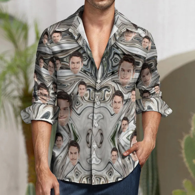 Custom Face All Over Print Large Long Sleeve Shirt Marble Ink Watercolor Texture