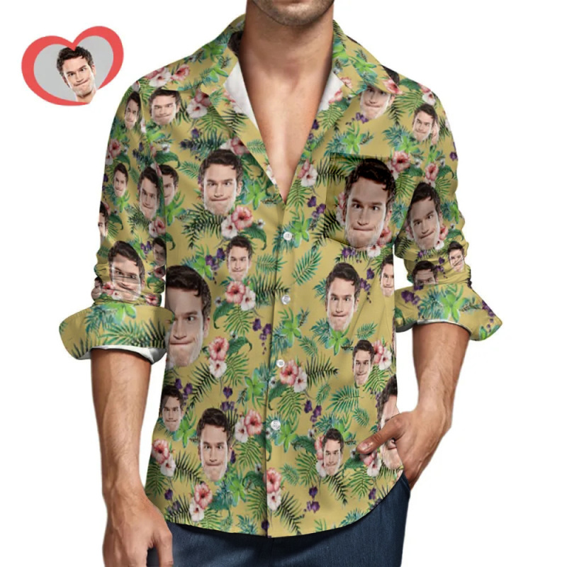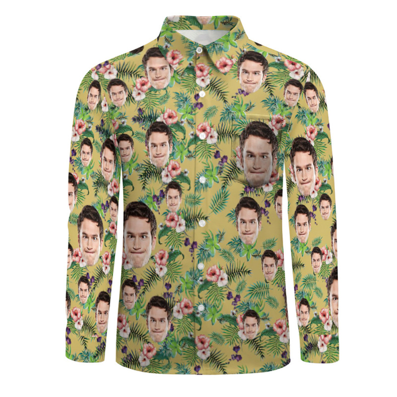 Custom Face All Over Print Long Sleeve Shirt Pink Flowers
