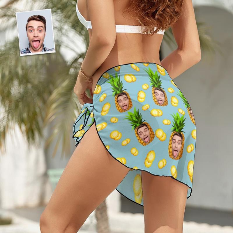 Custom Face Beach Wrap Women Short Sarongs - Pineapple