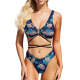 Custom Face Bikini Swimming Costume Women's Chest Strap Bathing Suit Personalized Photo Bikini Hawaiian Style Gift for Girlfriend or Wife - Blue Flowers