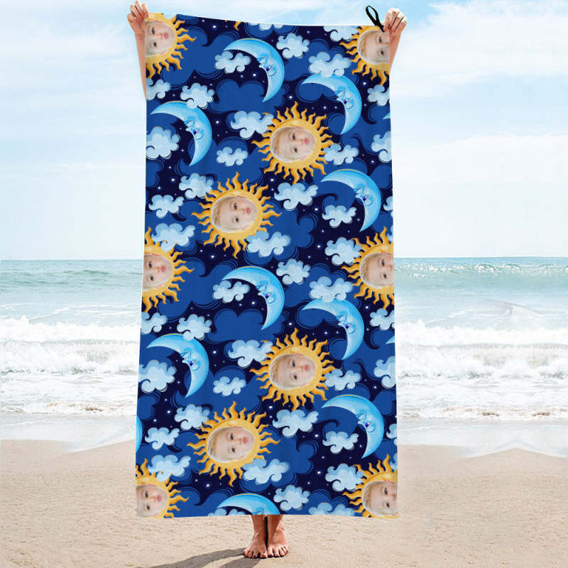 Custom Face Blue Moon Beach Towel Personalized Photo Beach Towel Funny Gift