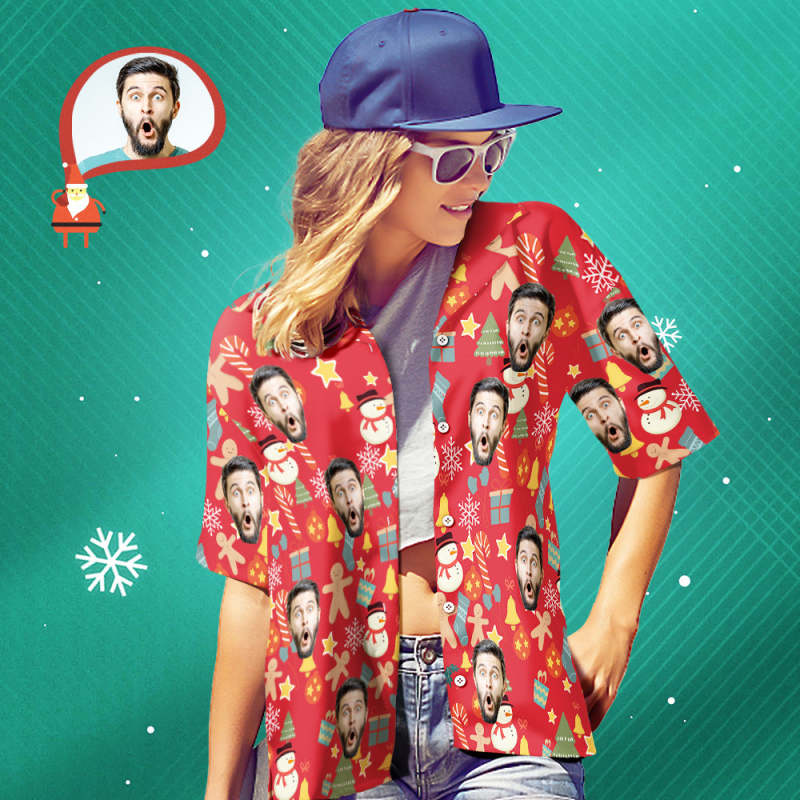 Put Your Face On Custom Christmas Hawaiian Shirt Parent-child Wears.