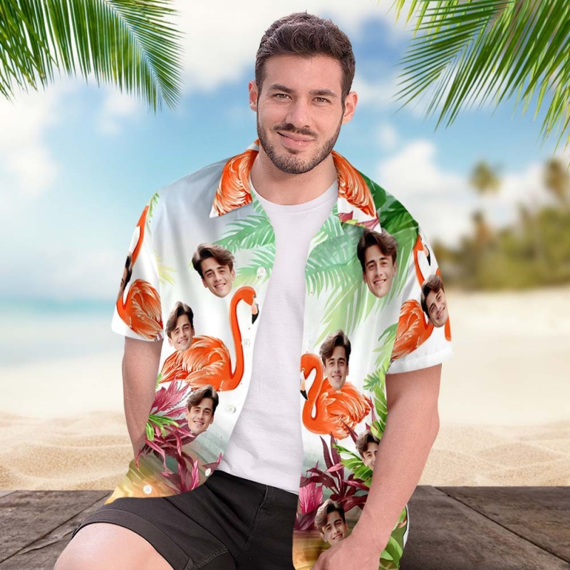 Custom Face Hawaiian Flamingo Valentine's day Shirt Personalized Button-down Shirt Gifts For Couple