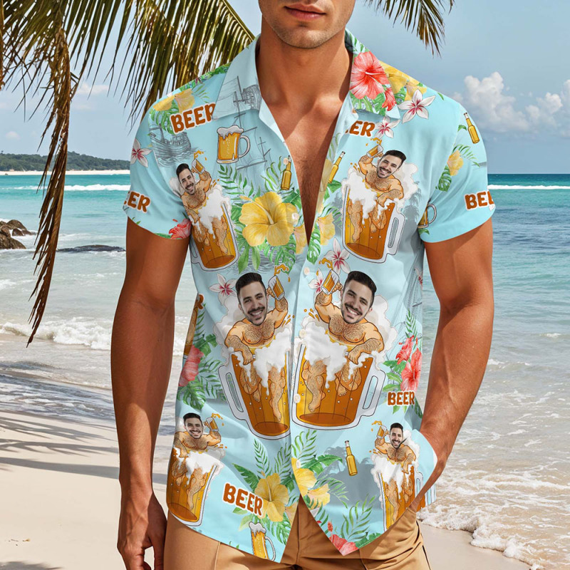 Custom Face Hawaiian Shirt Beer Print Personalized Aloha Beach Shirt Party Gift for Men