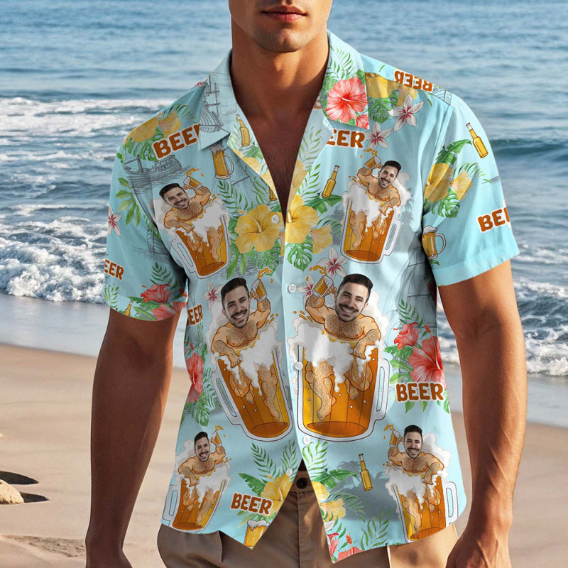 Home / Custom Face Hawaiian Shirt Beer Print Personalized Aloha Beach Shirt Party Gift for Men
