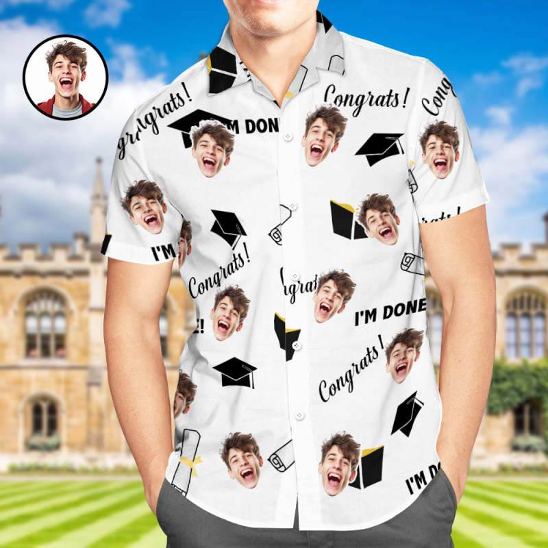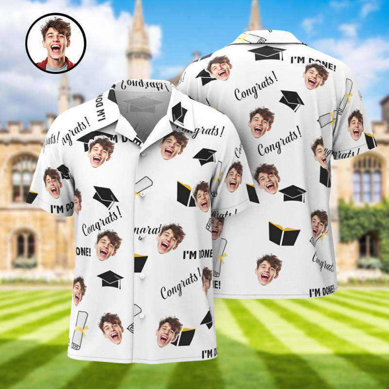 Custom Face Hawaiian Shirt Personalized Name Graduation Men's Aloha Shirts