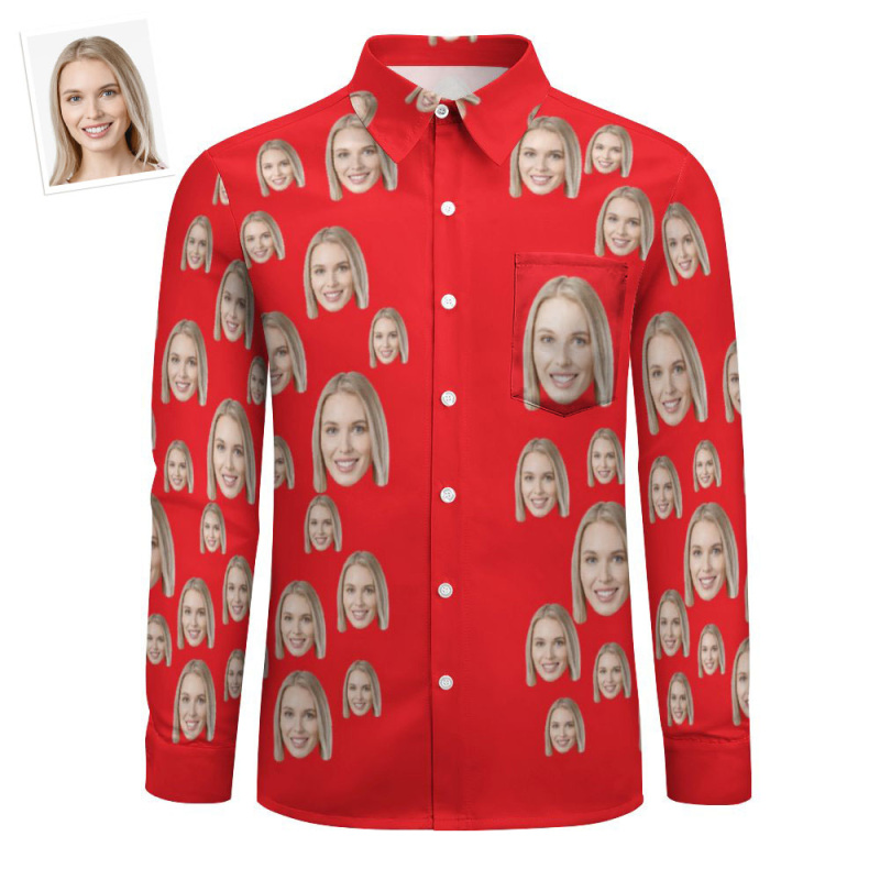 Custom Face Red All Over Print Large Long Sleeve Shirt
