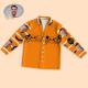 - Matching shirt with notched lapels; button front.