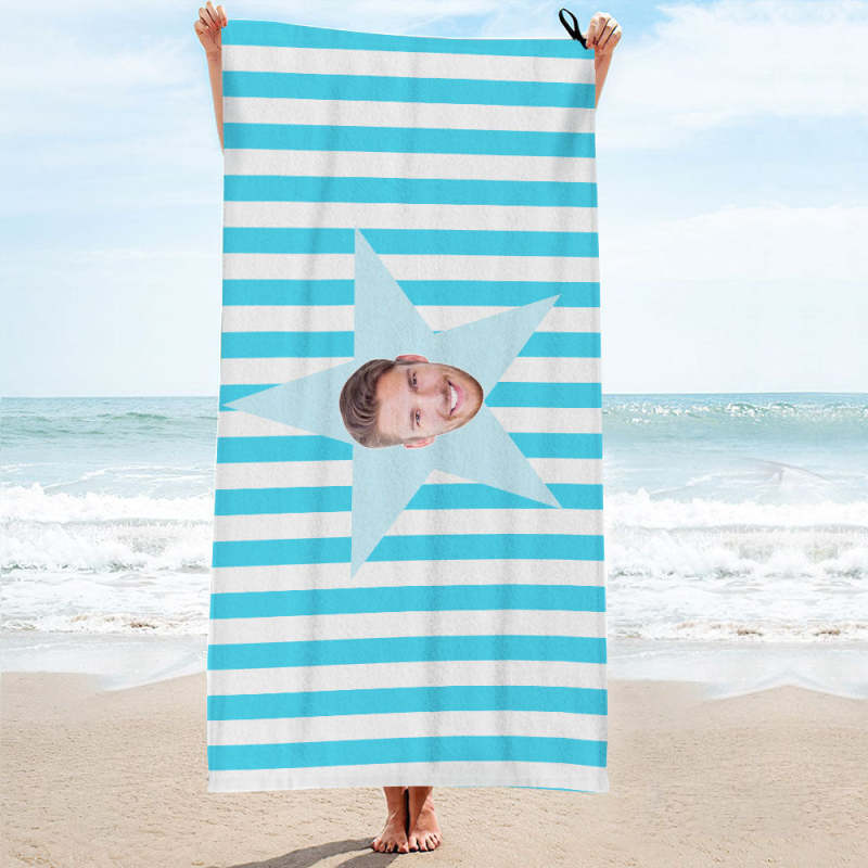 Custom Face Star Beach Towel Personalized Photo Beach Towel Funny Gift