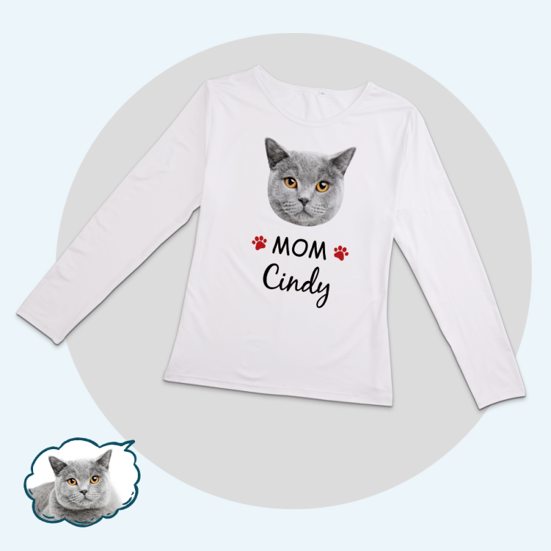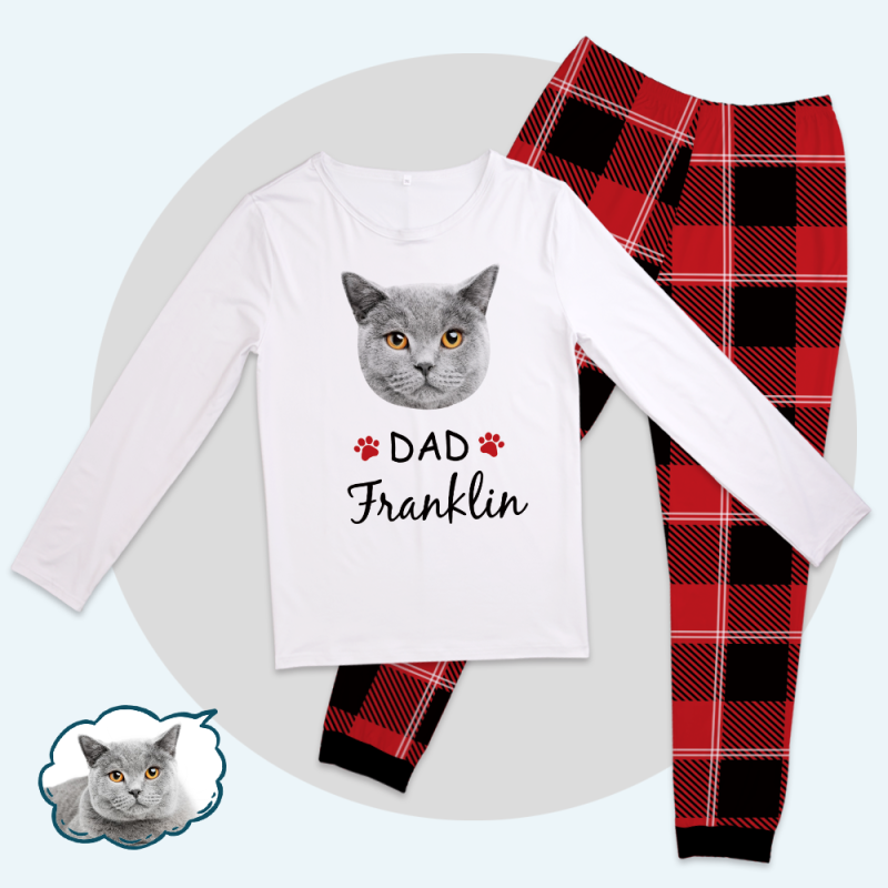 Custom Family Pajama Tops Add Photo And Name - Cat Face