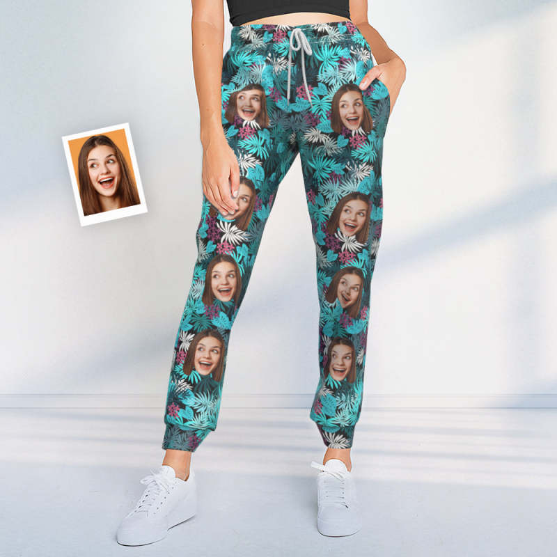 Custom Face Sweatpants Personalized Leaves Design Unisex Joggers