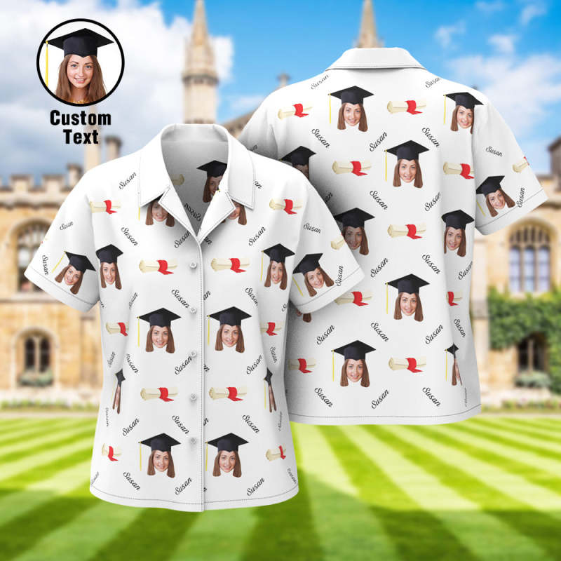 Custom Graduation Hawaiian Shirt with Face and Name Personalized Graduation Party Women's Aloha Shirts