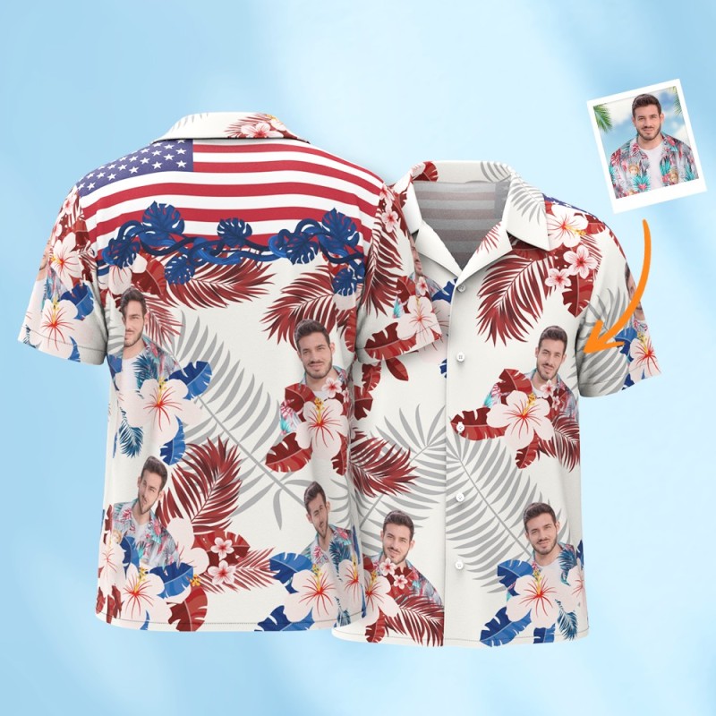 Custom Hawaiian Shirt Flowers And Colorful Leaves Personalized Print Face White Shirt