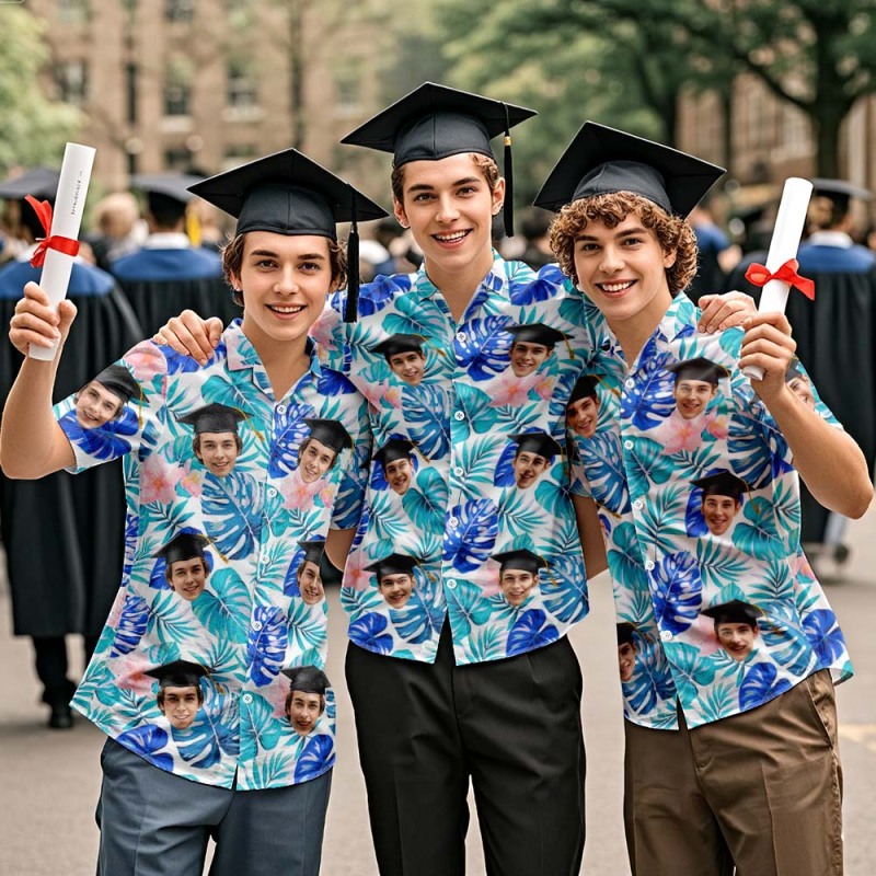 Put your (or their!) face on this hilarious custom Hawaiian shirt and make sure everyone remembers the grad in style. Whether it's for a senior prank, a grad party outfit, or just to show some love – this shirt delivers laughs, looks, and loud vibes.