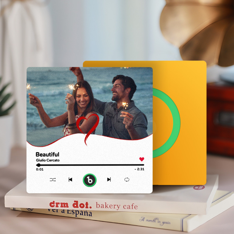 Customized Romantic Singing Refrigerator Magnet - The Best Gift Bring your favorite music to life with our Customized Album Fridge Magnet! This innovative magnet is more than just a decorative piece; it's a functional, interactive device that lets you play your favorite songs directly from your fridge. Whether you want to listen to a relaxing playlist while cooking or enjoy your favorite music while grabbing a snack, this fridge magnet makes it all possible.