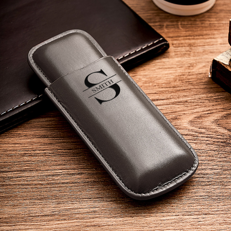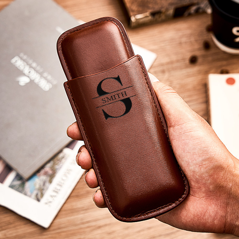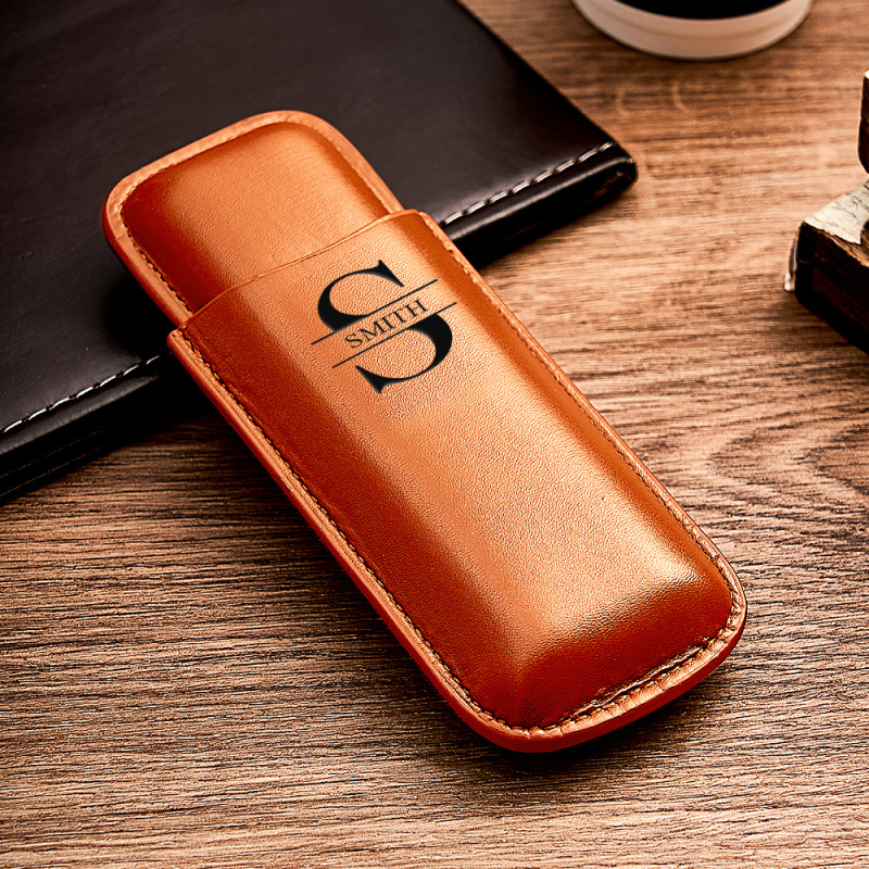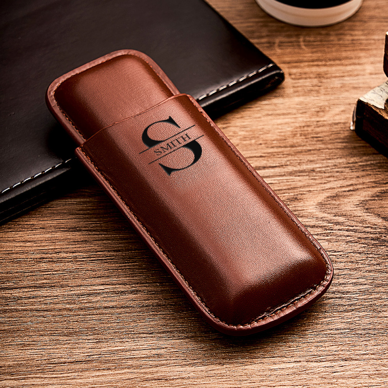 Home / Custom Name Leather Cigar Travel Case for 2 Cigars, Personalized Gift for Him or Dad