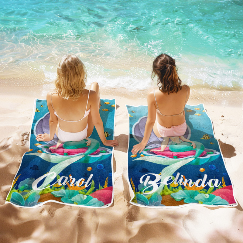 Home / Custom Photo Beach Towel, Mermaid Princess Swimming Towel, Quick Dry Bath Towel