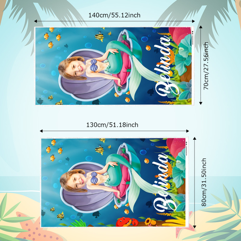 Custom Photo Beach Towel, Mermaid Princess Swimming Towel, Quick Dry Bath Towel