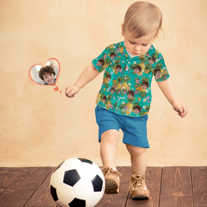Custom Photo Hawaiian Shirt Couple Outfit Parent-child Wears Face Hawaiian Shirt Gift
