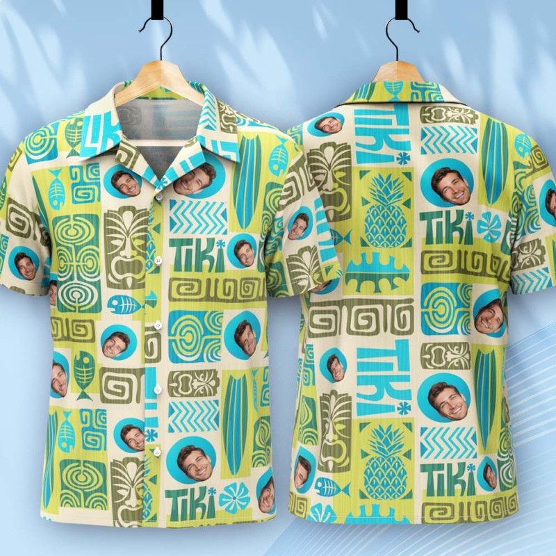 Home / Father Custom Face With Exotic Tiki Pattern Personalized Photo Hawaiian Shirt