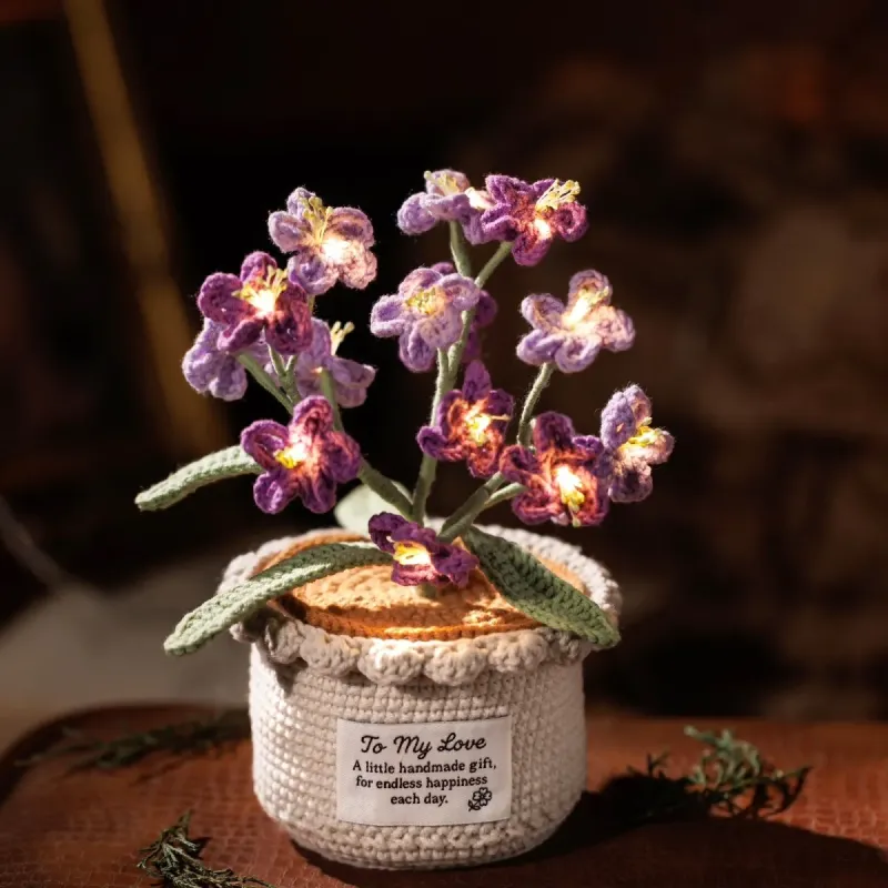 This handmade crocheted flower night light is a charming artificial flower decor for home and office. Made from premium yarn, the knitted flower features realistic details and a soft texture, offering long-lasting beauty with no maintenance required.