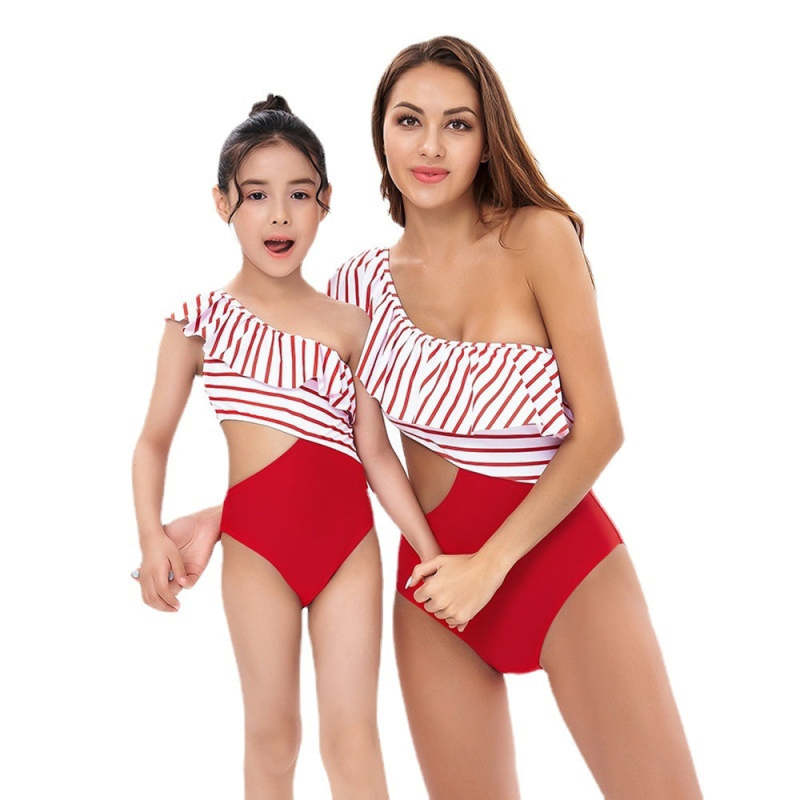 High Waist Bikini Ruffled Striped Parent-Child Swimsuit