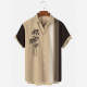 Men's Vintage Hawaiian Shirts Casual Palm Tree Print Striped Khaki Hawaiian Shirts for Men