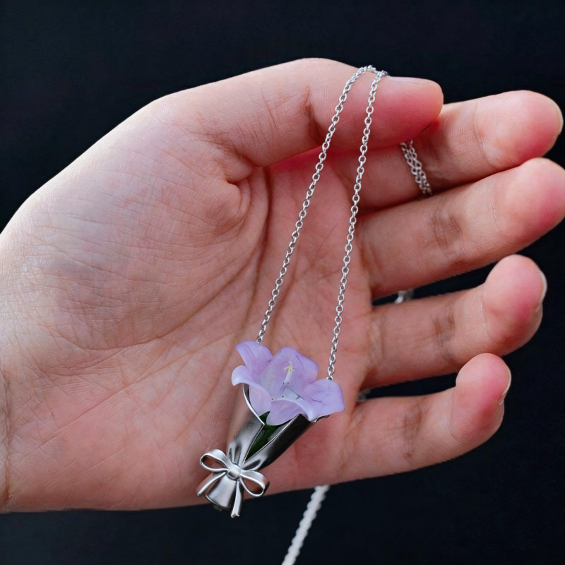 This Mini Bouquet Jewelry features a delicate bow-wrapped bouquet design that allows you to place a small real or artificial flower inside, creating a unique and personal accessory. Whether worn as a necklace or a brooch, it adds a soft, romantic touch to any outfit.