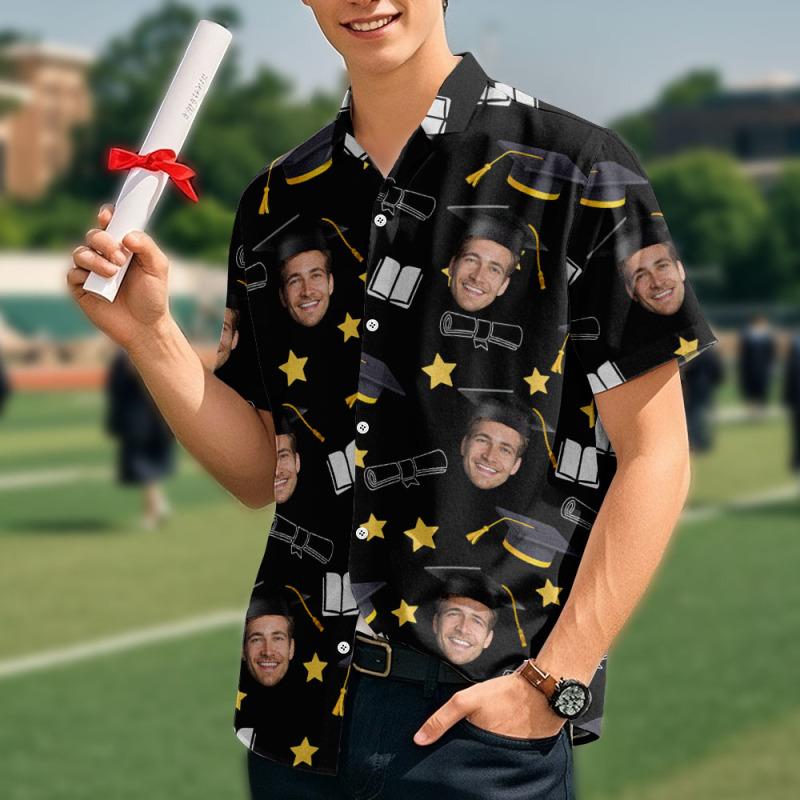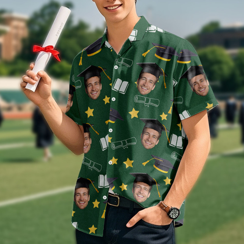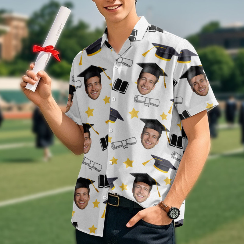 Home / Minimalist Graduation Face Shirt Custom Photo Aloha Shirt Available in Multiple Colors