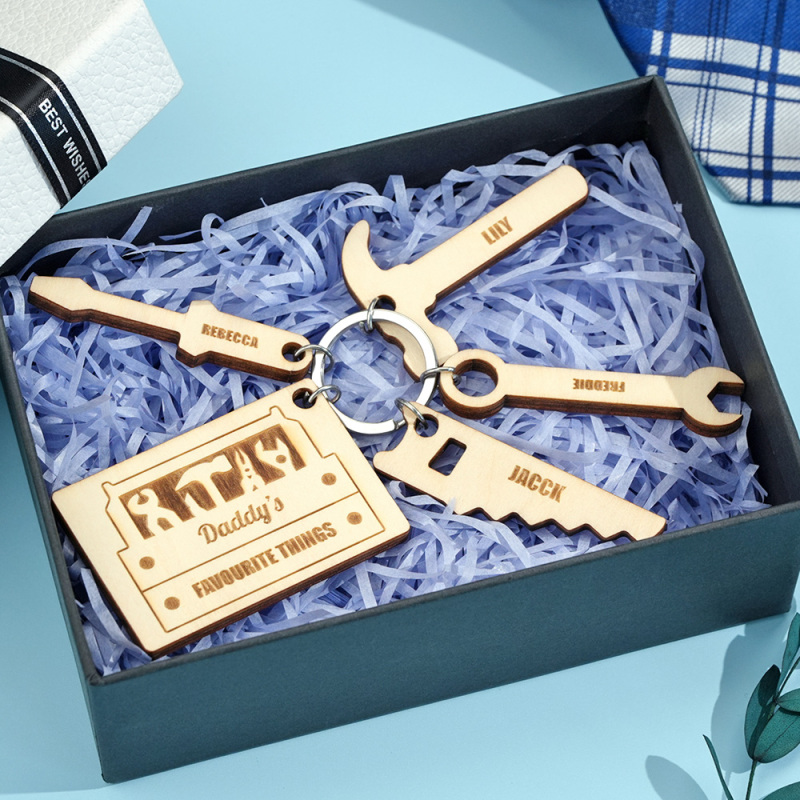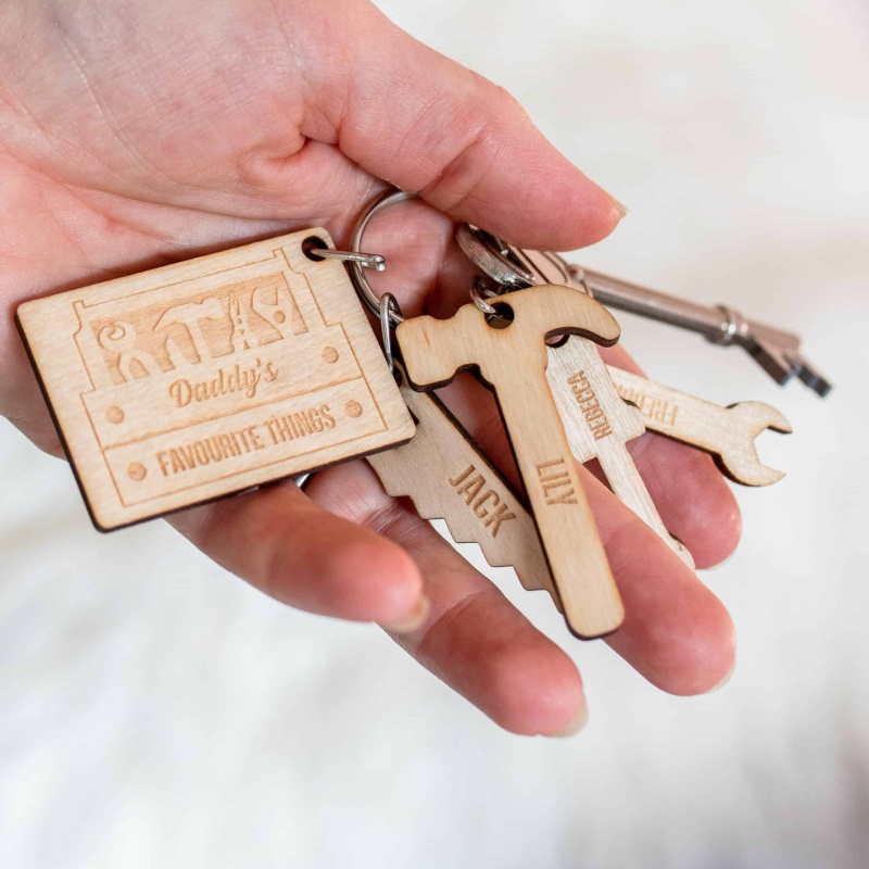 Personalised Wooden Dad’s Toolbox Child Family Tag Keyring