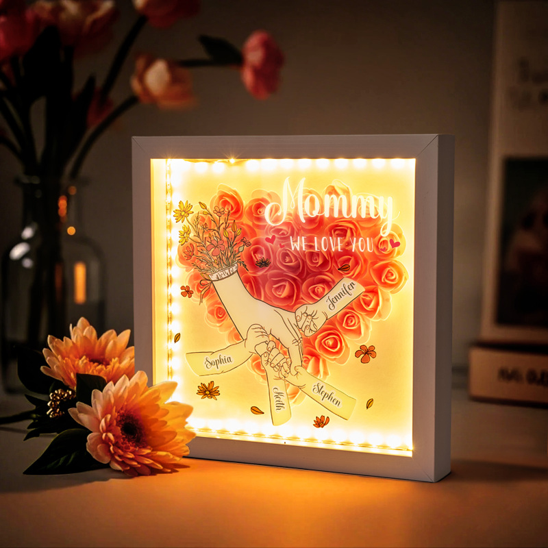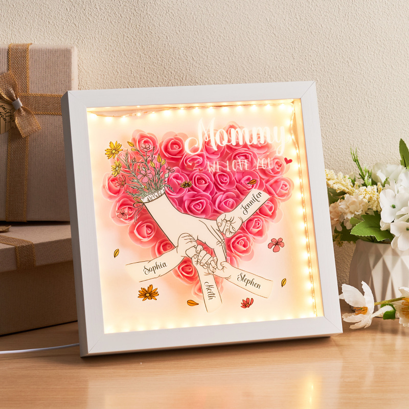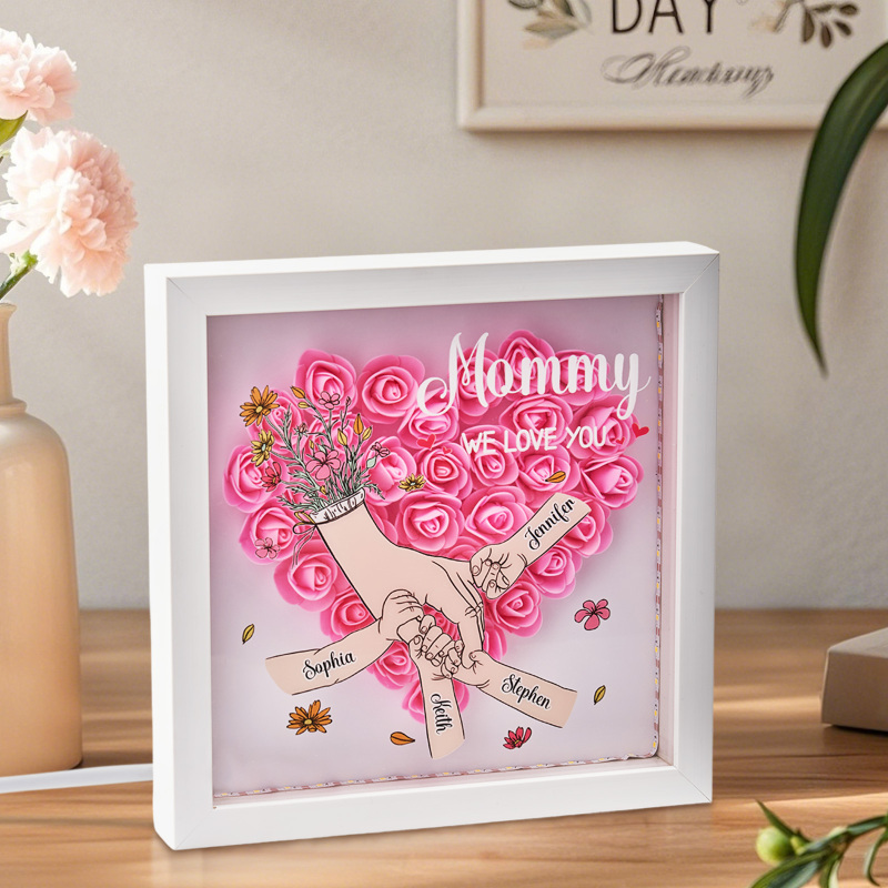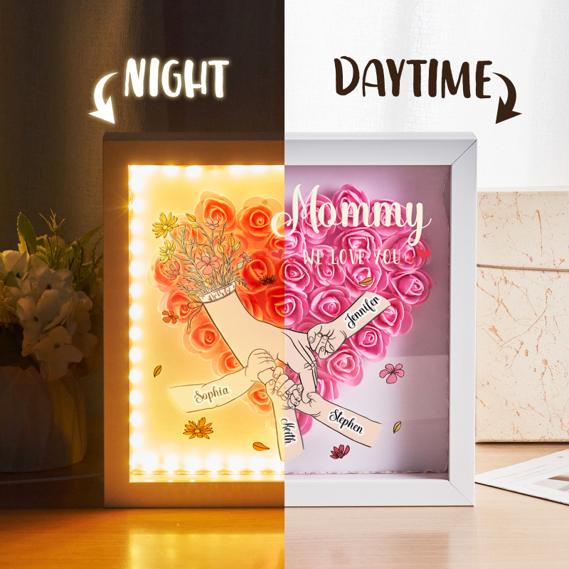 Personalized Flower Shadow Box with Light Custom Hand in Hand Special Mother's Day Gift