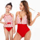 Red Striped One-piece Bikini High Waist Parent-Child Swimsuit