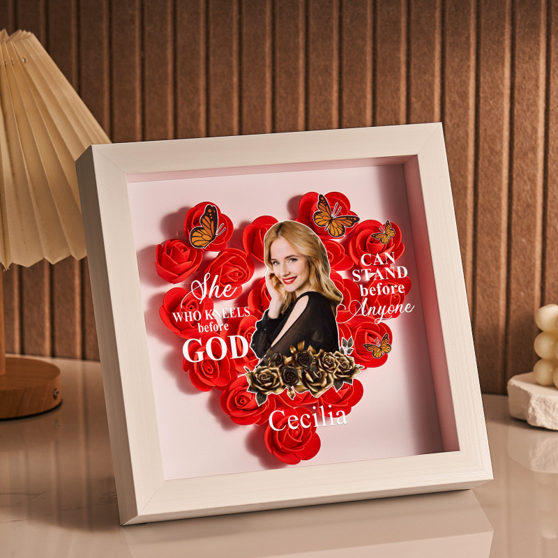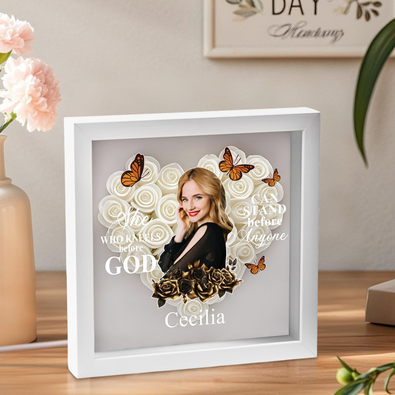 She Who Kneels Before God | Personalized Heart Flower Shadow Box