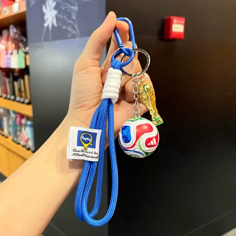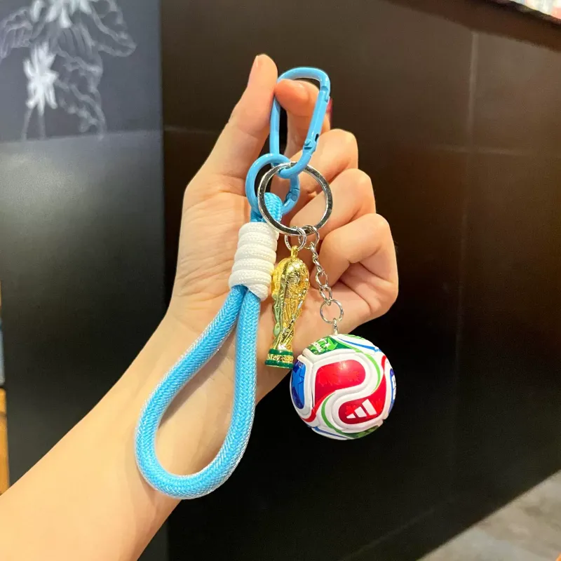 This Football World Champion Trophy Keychain features a detailed mini soccer ball paired with a gold trophy pendant, symbolizing passion, victory, and the love of the sport. Designed for true football fans, it brings the excitement of the world stage right into your pocket.