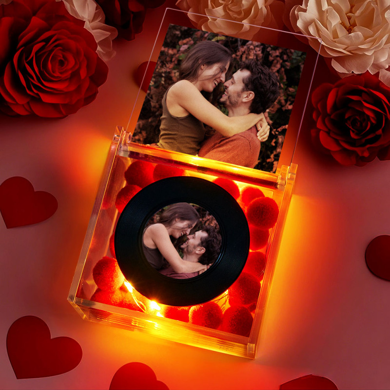 Bring a touch of nostalgia and personalization into your space with this Mini Music Record Player Custom Photo with Light Personalized Music Box. Designed to look like a vintage record player, this music box is more than just a decorative piece—it's a heartfelt keepsake that combines your cherished memories with soothing melodies.