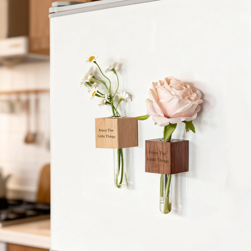 Magnetic Wooden Bud Vase: Flower & Plant Holders for Home Decor - Blooming Love On My Fridge